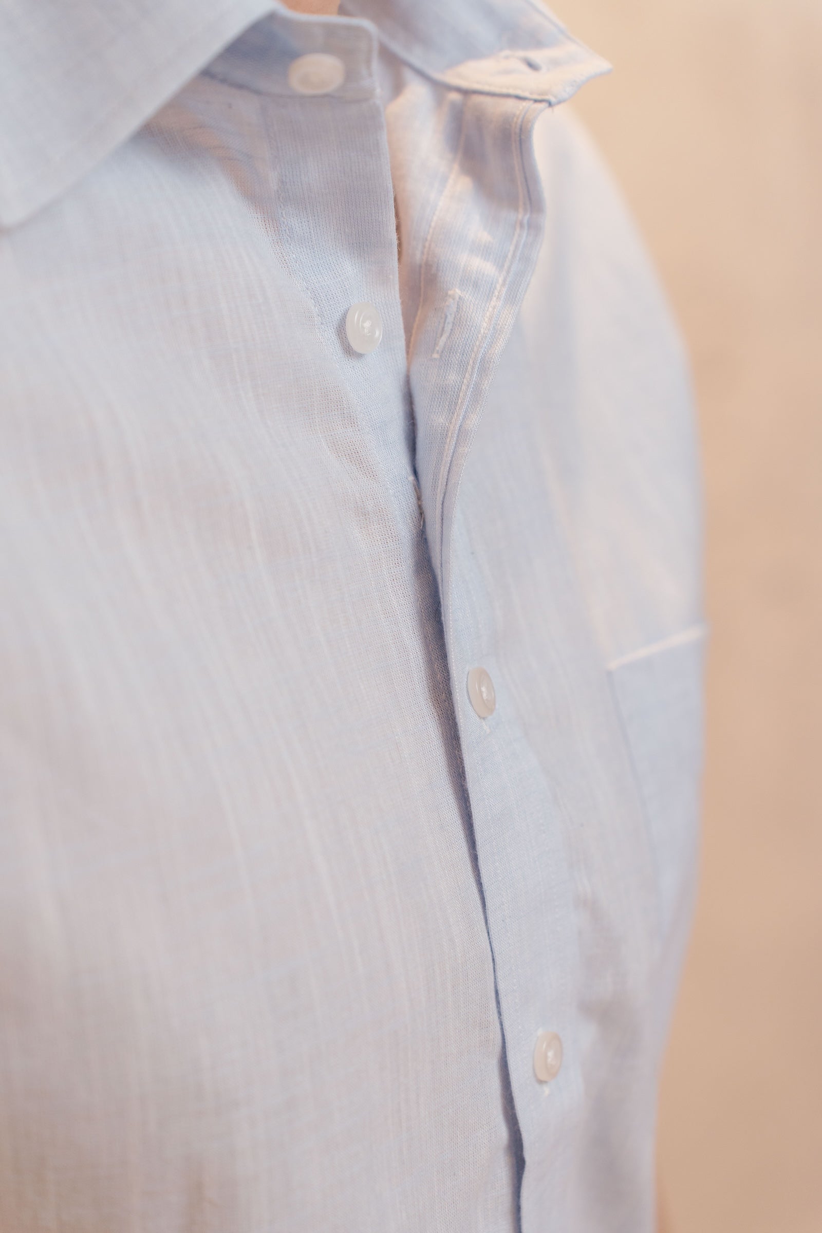 The placket and buttons are cleanly constructed for a smooth, refined finish, designed to sit flat and wear comfortably throughout the day. Finished with durable buttons and precise stitching, this detail adds both function and a subtle touch of craftsmanship.